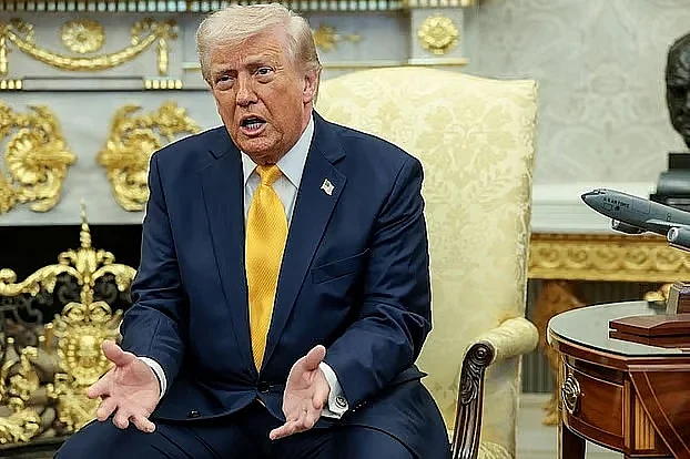 সাংবাদিকদের সঙ্গে কথা বলছেন মার্কিন প্রেসিডেন্ট ডোনাল্ড ট্রাম্প। হোয়াইট হাউসের ওভাল অফিসে, ১৯ মার্চ ২০২৬ছবি: রয়টার্স